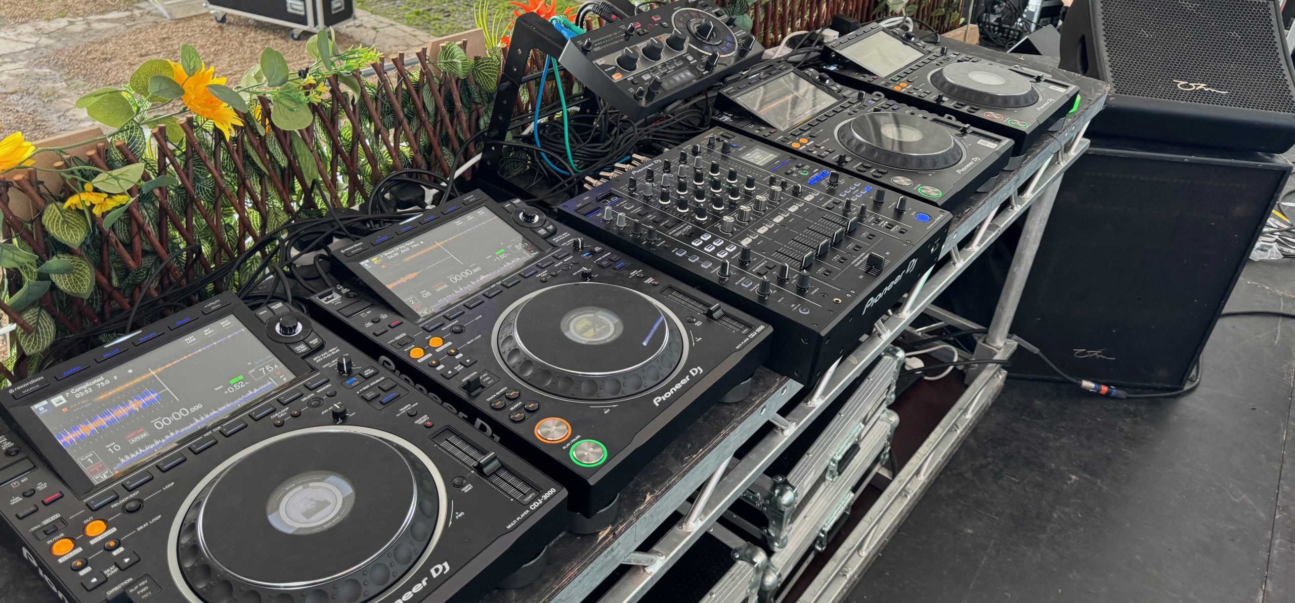4 x CDJ-3000 CDJs plus DJM-A9 Mixer and RMX1000 Effects Unit
